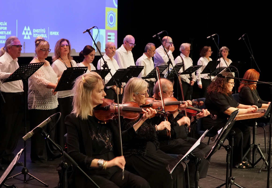 Enstitü İstanbul İSMEK, dönem sonu etkinlikleri kapsamında düzenlediği konserde, Türk müziği sevdalılarını buluşturdu. Enstitü İstanbul İSMEK’ten Türk Sanat Müziği Korosu eğitimi alan katılımcıların sahne aldığı konser, Ataşehir İnal Aydınoğlu Kültür Merkezi’nde gerçekleşti. Levent Çelik, Mustafa Âşık, Tarık Kemancı, Ramazan Söyler, Tankut Eliyürekli ve Serdar Aygün gibi değerli eğitmenlerin katılımcılarından oluşan koro, Klasik Türk müziği eserleriyle zengin bir repertuvarla sahne aldı. Konser, iki bölümden oluştu ve dinleyicilere keyifli bir müzik deneyimi sundu. Dede Efendi’nin Sultaniyegâh Klasik Faslı adlı ilk bölümde, “Şadeyledi Dilimi Şah-ı Cihanım”, “Nihan Ettim Seni Sinemde Ey Mehpare Canımsın” adlı eserlerin de yer aldığı altı eser seslendirildi.