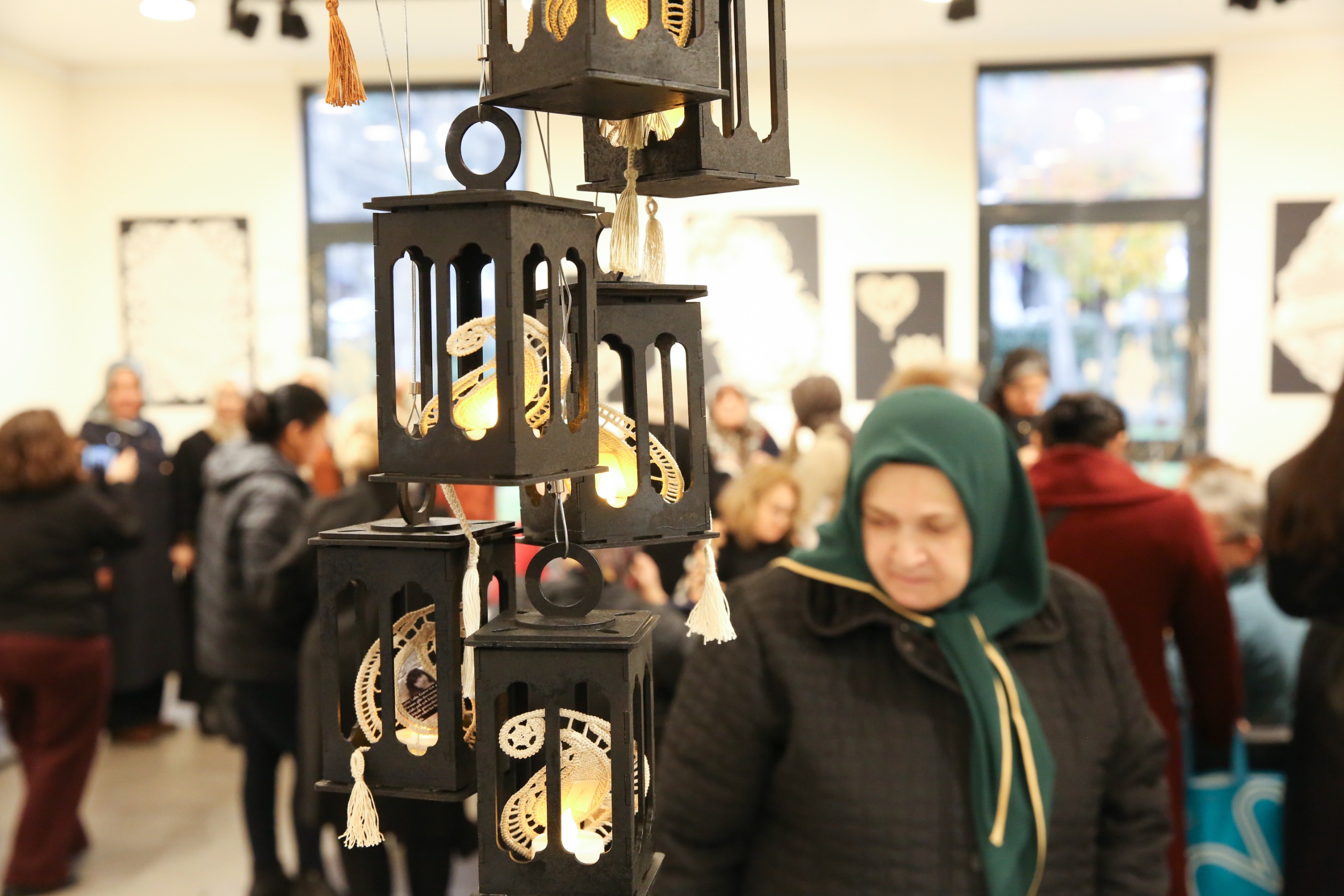 Dantel Anglez Sergisi’nde runner örtülerden çantalara, abajurlardan ev aksesuarlarına, tepsilerden bardak altlıklarına kadar pek çok eser yer aldı. Geleneksel çizgilerin modern anlayışa evrildiği zarif dantel motiflerini sanatseverlerle buluşturan sergi, ziyaretçilerin beğenisini kazandı. Sergide ayrıca ziyaretçilere, dantel anglez tekniklerini öğrenip uygulayabilme fırsatı sunan deneyim alanı da büyük ilgi gördü.