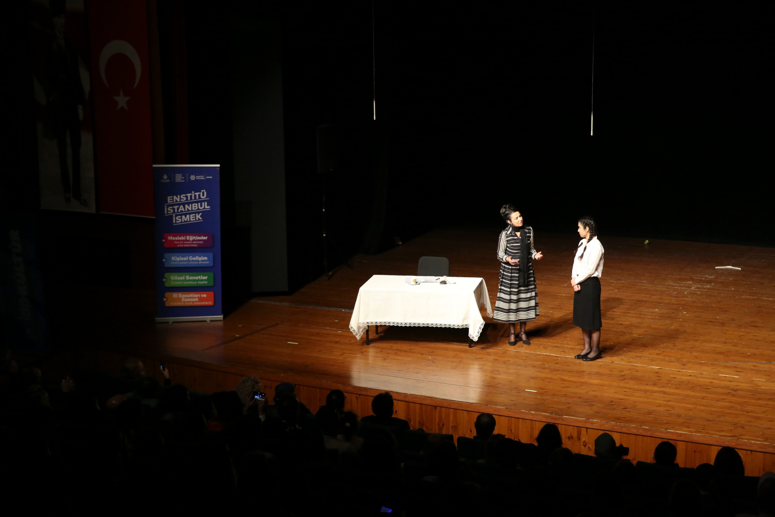 Enstitü İstanbul İSMEK, Dünya Tiyatro Günü’nü, İBB Bülent Ecevit Kültür Merkezi’nde düzenlenen çok özel bir programla kutladı. “Dünya Tiyatro Günü Etkinliği”nde, Enstitü İstanbul İSMEK’te tiyatro eğitimi alan katılımcılar sahne aldı. Program, Enstitü İstanbul İSMEK eğitmenleri Ecem Yılmaz, Alper Fedakâr, Can Keskin ve Jiyan Aktaş’ın sergilediği müzik dinletisiyle başladı. Dünya Tiyatro Günü’ne özel bildirilerin okunmasının ardından sahne performanslarına sıra geldi.