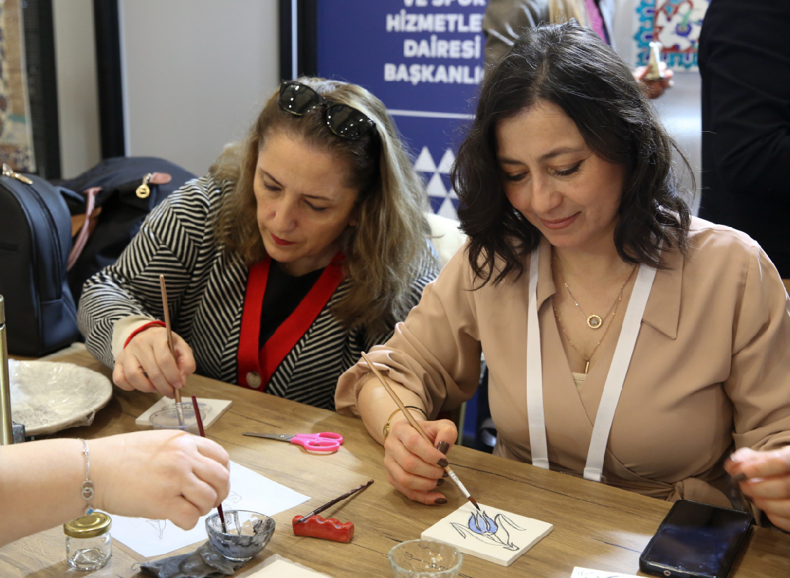Cam süslemeden çiniye, halı dokumadan iğne oyasına, seramik şekillendirmeden tel kırmaya kadar pek çok alandaki atölyeler, açıldığı ilk günden itibaren fuar katılımcılarından büyük ilgi gördü.
